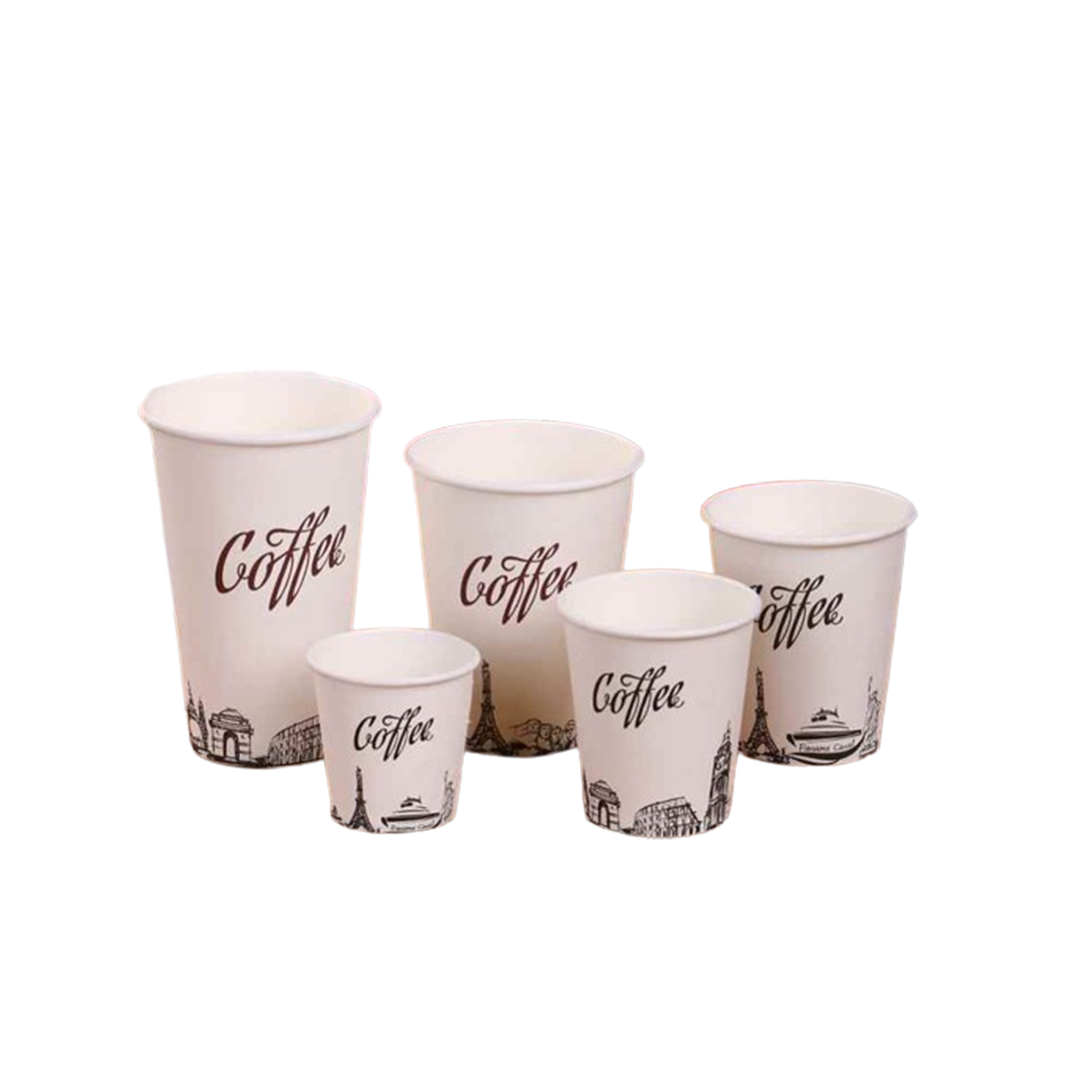 Vasos de café sin asas en caja de 1000 unidades, disponibles en tamaños de 4oz, 6oz, 8oz y 12oz. Ideales para bebidas calientes, diseño cómodo y desechables.
